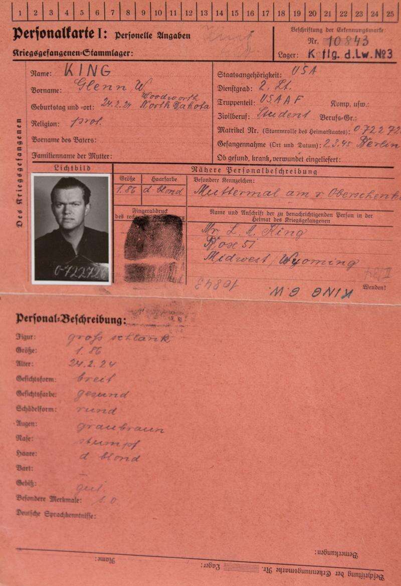 “I looked over at his cap and could see a swastika. So I knew where I was,” King says. “I was a prisoner of war.”