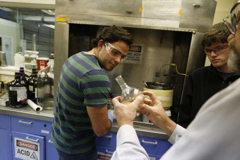 Chemists test methods for efficiently turning raw hemp into pulp, which can be used for paper and other products, at Pure Vision Technology, a biomass factory in Ft. Lupton, Colo. Biomass company CEO Ed Lehburger examines a barrel of shredded hemp, below, on the way to being turned into pulp. The newly legal hemp industry is entering its second growing season with some big questions for producers experimenting with marijuana's non-intoxicating cousin. Associated Press / May 19, 2015