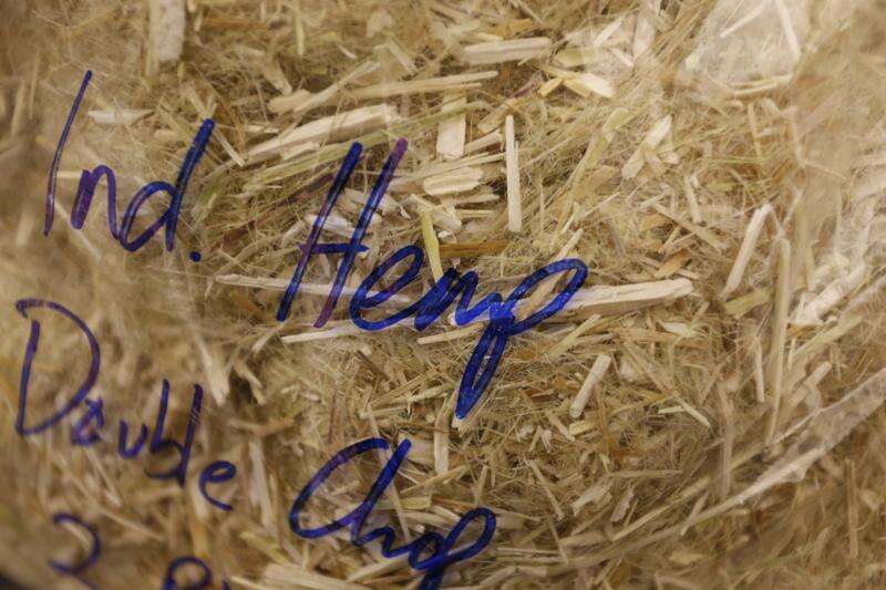 In this May 19, 2015 photo, a bag of shredded hemp on the way to being turned into pulp and used for paper and other products sits on a table, at Pure Vision Technology, a biomass factory in Ft. Lupton, Colo. The newly legal hemp industry is entering its second growing season with some big questions for producers experimenting with marijuana's non-intoxicating cousin.