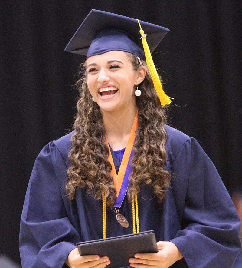 Faculty member Lily Justiniano blows a kiss to graduates during Buffalo Grove High School's graduation ceremony on Sunday at the school.