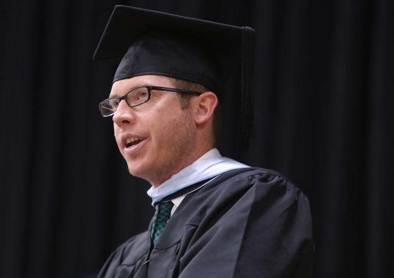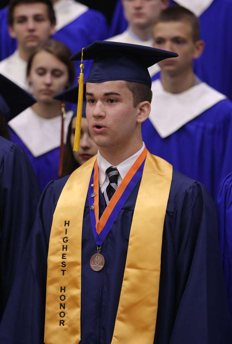 Milan Babic gives the student speech during Buffalo Grove High School's graduation ceremony on Sunday at the school.