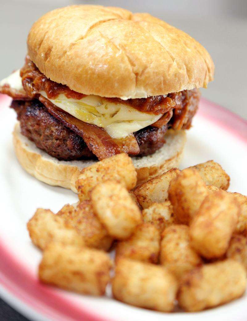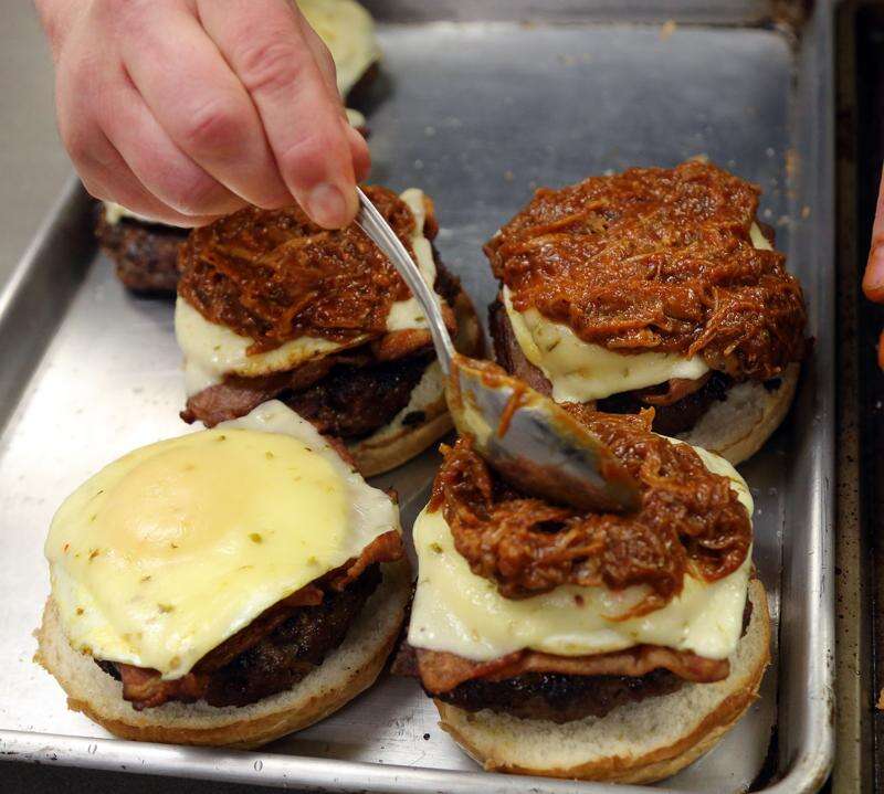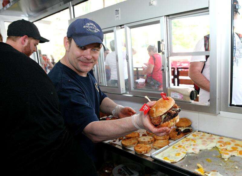 Waukegan firehouse where he works and helps out in the kitchen. The burger comes packed with pulled pork, bacon, pepper jack cheese and topped with a fried egg.