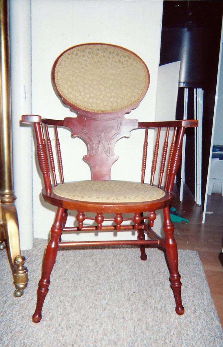 This unusual chair is a late 19th-century parlor chair.