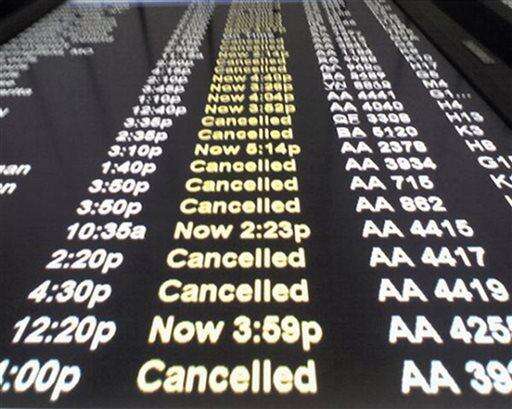 A departure monitor at Chicago's O'Hare International Airport where many flights were canceled and others delayed by a winter storm in 2008. The Associated Press File Photo, 2008
