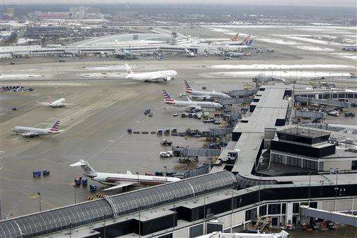An American Airlines jet, right, taxis past United Airlines and United Express jets at O'Hare International Airport in Chicago as the Willis Tower looms in the background. The Associated Press File Photo 2010