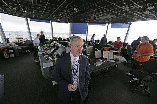 Jim Krieger, FAA manager at the O'Hare International Airport speaks in the O'Hare control tower as air traffic controllers monitor traffic. The Associated Press