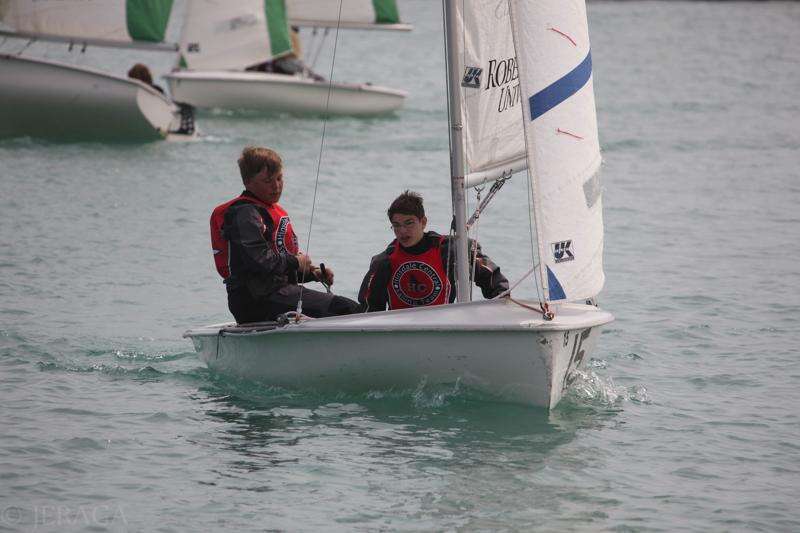 Jacob Dannhausen-Brun and David Phlamm sailing into the dock to switch boats photo by Christine Dannhausen-Brun
