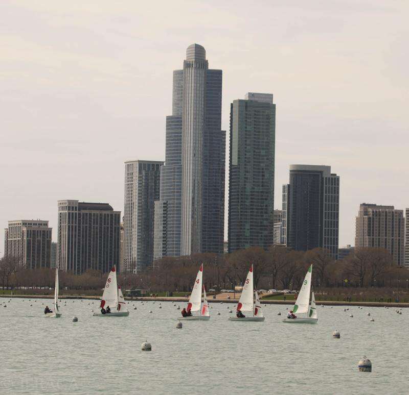 Like other regattas, the Autumn Classic Regatta at Chicago Yacht Club in Belmont Harbor in September 2014 cuts a classic profile in the Chicago skyline. photo by Christine Dannhausen-Brun