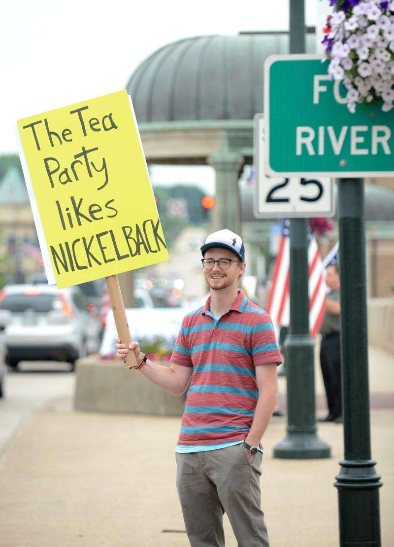 Not everyone was there to protest the Affordable Care Act. Patrick O'Connor of St. Charles stood at the eastern end of the bridge with a sign that read, “The Tea Party likes Nickelback.”
