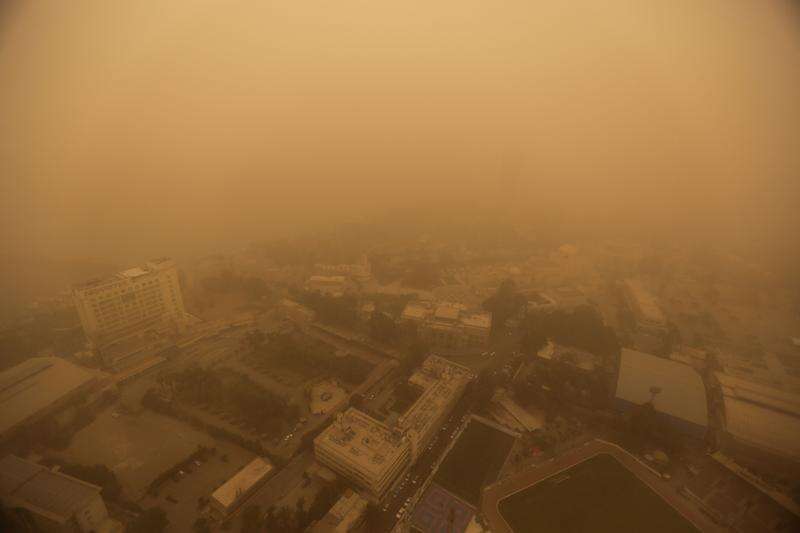 Fierce winds whipped through the capital as many residents took cover from the sand by staying indoors. Others were seen braving the storm wearing surgical masks or covering their faces with clothing, as the wind sent rubbish and dust swirling.