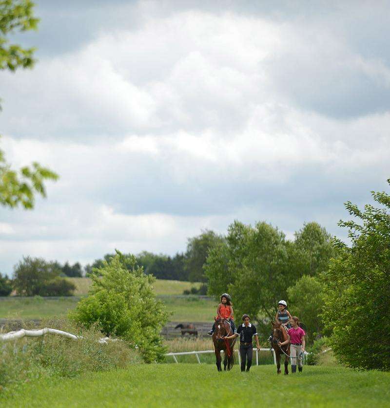 Another scenic spot for trail rides is Tower Hill Stables in Hampshire. Anyone age 8 and older can go on one-hour trail rides through the facility's bucolic 140 rolling acres. Kids under 8 can go on pony rides along the racing track.