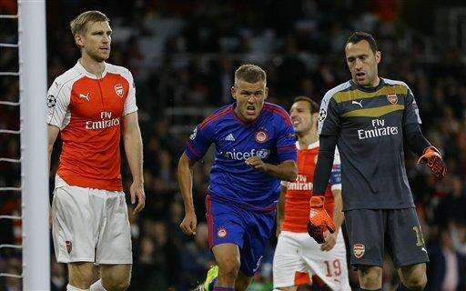 LONDON (AP) - A goalkeeping blunder by David Ospina helped Olympiakos beat Arsenal 3-2 in the Champions League on Tuesday and leave the Gunners in real danger of its first group-stage exit in 16 years.