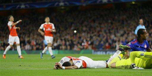 Arsenal's reaction was swift, though, as Walcott took a pass from Sanchez and broke into the left side of the area, firing a low shot toward the far post that Olympiakos goalkeeper Roberto got his hands to but could only deflect into his own net.