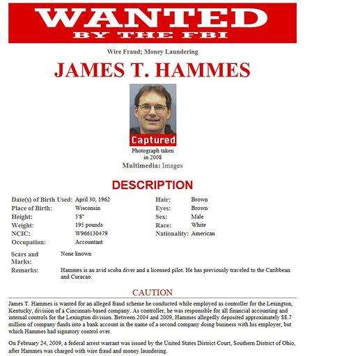 The FBI said Hammes fled soon after being confronted about money missing from the Pepsi-Cola bottler he worked for. Authorities haven't said what they think happened to the money or commented on his whereabouts the last six years.