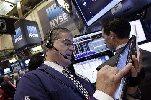 In the commodity markets, precious metals finished with big gains. Gold jumped $22.90, or 2 percent, to $1,136.60 an ounce, and silver soared 75 cents, or 5 percent, to $15.26 an ounce. Copper rose 2 cents, or 1 percent, to $2.33 a pound.