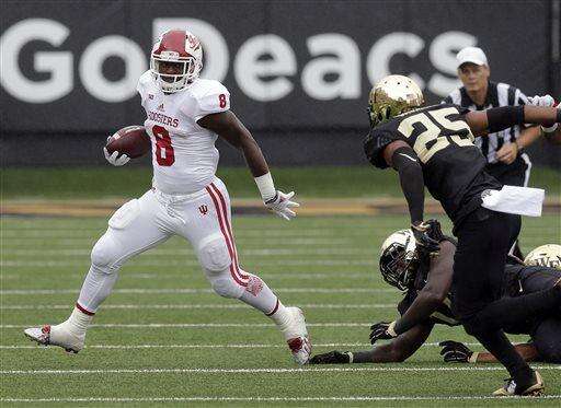 Indiana's Jordan Howard (8) runs against Wake Forest during the first half of an NCAA college football game in Winston-Salem, N.C., Saturday, Sept. 26, 2015. (AP Photo/Chuck Burton)