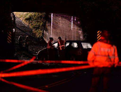 Emergency personnel, including South Carolina Highway Patrol and the Spartanburg County Coroner's Office, work on the scene where several cars were trapped briefly under a bridge during flooding from heavy rain Thursday morning, Oct. 1, 2015, in Spartanburg, S.C. Spartanburg County Coroner Rusty Clevenger told local media that a person died early Thursday when several cars were submerged in flash floods under the bridge, where flooding often occurs during heavy rain. (AP Photo/Spartanburg Herald-Journal/Tim Kimzey) MANDATORY CREDIT The Associated Press