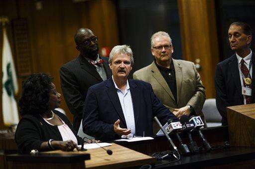 Mark Valacak, director of the Geneseee County Health Department, issues a public health state of emergency due to the lead in city water during a press conference at the Genesee County Administration Building in Flint, Mich. on Thursday Oct. 1, 2015. (Christian Randolph/The Flint Journal-MLive.com via AP) The Associated Press