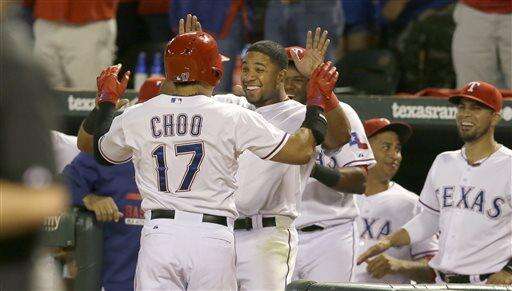 Shin-Soo Choo matched his career high with his 22nd homer leading off the Texas fourth to tie the game at 1. Choo is batting .413 (33 of 80) over his last 21 games to raise his batting average from .253 to .276, and has reached base in 51 of his last 53 games.