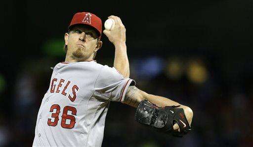 Jered Weaver, making his 20th career start at Texas, allowed two hits over six innings. The right-hander struck out two and walked three.