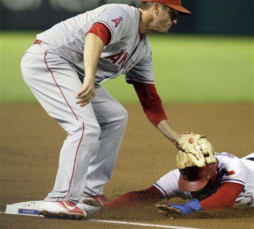 Erick Aybar singled on the first pitch of the game, advancing on Pujols' single before scoring on C.J. Cron's hit for a 1-0 lead off Rangers left-hander Martin Perez.