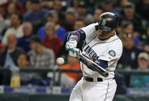 Seattle Mariners' Robinson Cano hits a sacrifice fly to score Kyle Seager in the first inning of a baseball game against the Houston Astros, Tuesday, Sept. 29, 2015, in Seattle. (AP Photo/Ted S. Warren) The Associated Press