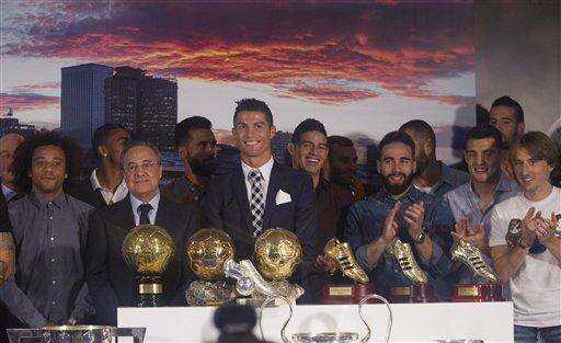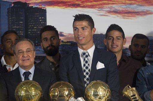 Several of Ronaldo's teammates were present for the ceremony at the Santiago Bernabeu, as well as Madrid coach Rafa Benitez and the player's mother and young son. The 30-year-old Ronaldo posed for photos with all of them after the ceremony.