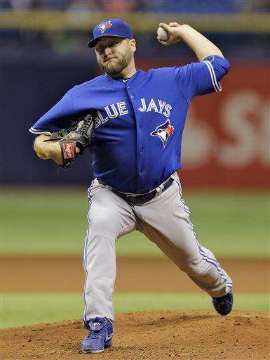 Toronto Blue Jays' Mark Buehrle pitches to the Tampa Bay Rays during the first inning of a baseball game Friday, Oct. 2, 2015, in St. Petersburg, Fla. (AP Photo/Chris O'Meara) The Associated Press
