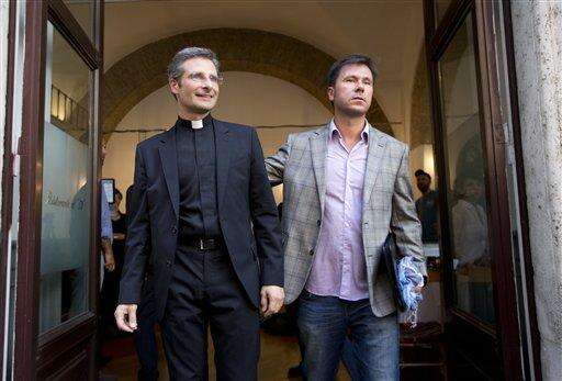 Charamsa, 43, initially planned a press conference in front of the Vatican's Congregation for the Doctrine of Faith's office, but moved it to central Rome after the Vatican action. He was joined by his companion, identified only as Eduard.
