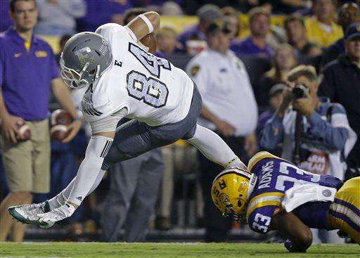 The Eagles stacked their defense to stop the run, but the Tigers (4-0) struggled to cash in through the air. LSU quarterback Brandon Harris was 4 of 15 for 80 yards with one interception.