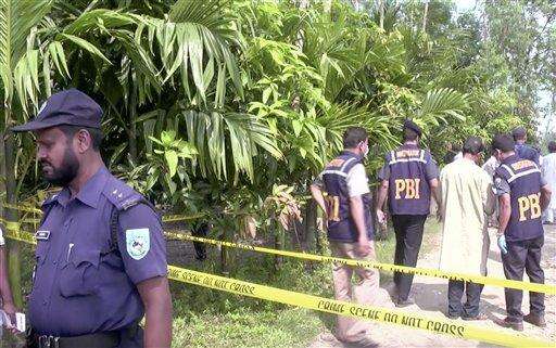 In this image made from video, investigators work at the site where Japanese national Kunio Hoshi was shot and killed in Mahiganj village in Rangpur district, Bangladesh, Saturday, Oct. 3, 2015. Masked assailants riding a motorbike shot and killed a Japanese man in northern Bangladesh on Saturday, police said, the second foreigner in a week to be gunned down in the South Asian country. (APTN via AP) The Associated Press