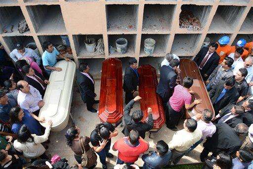 City workers rapidly prepared burial niches in a large crypt wall for the dead, with dozens of square holes awaiting coffins. At least 16 coffins had been interred by Sunday, and the names of the deceased etched into the fresh cement used to seal the crypts.