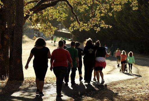 Area residents participate in a fund raising walk held at Stewart Park, to help the families of the victims of the Umpqua Community College shooting, Saturday, Oct. 3, 2015, in Roseburg, Ore. Armed with multiple guns, Chris Harper Mercer walked in a classroom at the community college, Thursday, and opened fire, killing several and wounding several others. (AP Photo/Rich Pedroncelli)