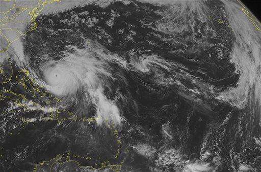 The U.S. National Hurricane Center in Miami says Joaquin is a severe hurricane and is moving northeast at 17 mph (28 kph).