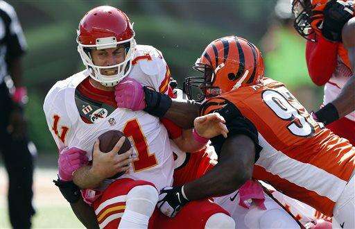 Notes: Chiefs cornerback Sean Smith returned from a three-game suspension for violating the league's substance abuse policy and had a tough time covering A.J. Green, who had six catches for 78 yards in the first half. ... It was Dalton's second straight 300-yard passing game and the 16th of his career, including one in the playoffs. ... Tennessee's Rob Bironas holds the NFL record with eight field goals in 2007.