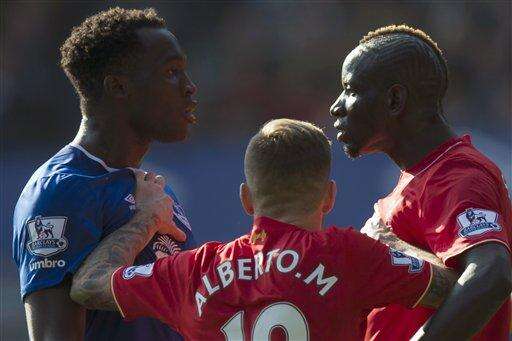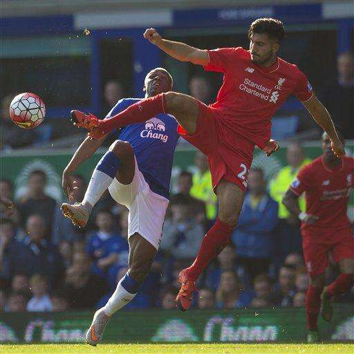 LIVERPOOL, England (AP) - Everton and Liverpool drew 1-1 Sunday in the Premier League to keep Brendan Rodgers unbeaten in Merseyside derbies but still struggling to get his Reds properly firing.