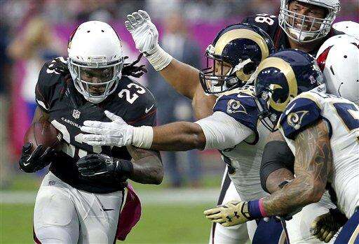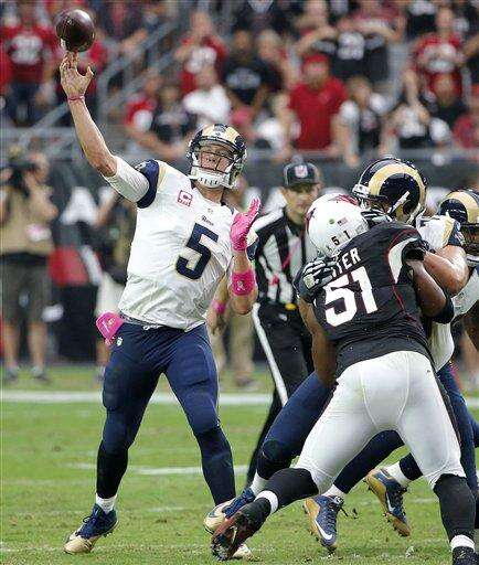 NOTES: St. Louis coach Jeff Fisher said inside linebacker Alec Ogletree broke an ankle in the first half and will require surgery. Fisher said he didn't know if Ogletree would be lost for the season, that he might be listed as injured designated to return. ... The Rams sacked Palmer four times. He was sacked once in the first three games.