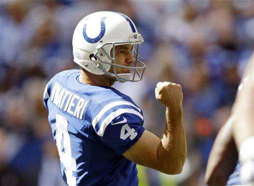 With a right shoulder injury keeping Luck out of an NFL game for the first time, the Colts quarterback pumped his fist repeatedly as 40-year-old quarterback Matt Hasselbeck and 42-year-old kicker Adam Vinatieri celebrated their personal throwback day. Hasselbeck led the Colts on a 53-yard drive in overtime Sunday and Vinatieri finished it with a 27-yard field goal for a 16-13 victory over Jacksonville.