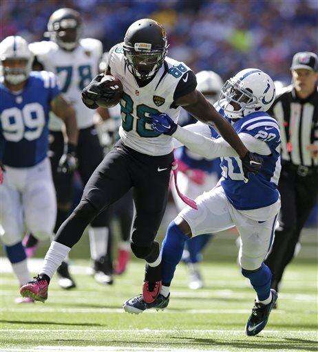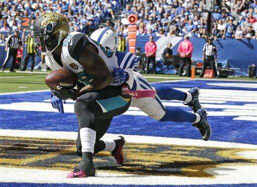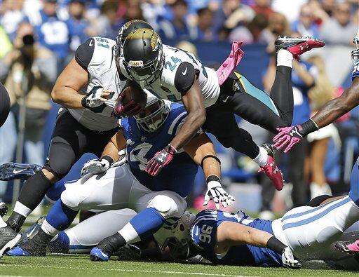 NOTES: Vinatieri also made his 479th field goal, breaking a tie for fourth place with John Carney. ... Indy lost Inside linebacker Jerrell Freeman and cornerback Jalil Brown in the first half with groin injuries. Both will be evaluated Sunday night. ... Hurns had eight receptions in the first half, surpassing his previous career best in just two quarters. ... Three Jacksonville players did not finish the game - middle linebacker Paul Posluszny (sprained ankle), cornerback Aaron Colvin (shoulder) and safety James Sample (shoulder).