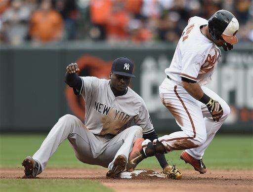 BALTIMORE (AP) - The New York Yankees stumbled into home-field advantage in the AL wild-card game, falling to the Baltimore Orioles 9-4 Sunday after a loss by Houston made the outcome meaningless.