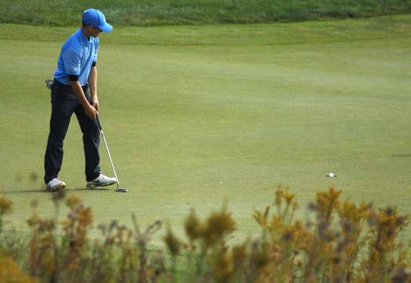Geneva freshman Jack McDonald waited patiently on the 18th green at The Highlands of Elgin Tuesday while St. Charles East senior Daniel Haugen lined up his putt.