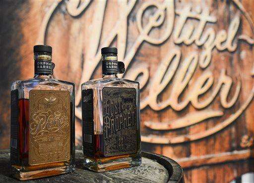 In this photo provided by Neiman Marcus, two bottles of bourbon available for tasting represent the $125,000 Orphaned Barrel Project gift during the launch of the Neiman Marcus Christmas Book, Tuesday, Oct. 6, 2015 in Dallas. (Tim Sharp/Neiman Marcus via AP) The Associated Press