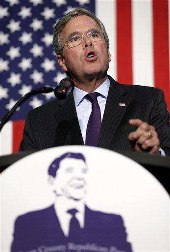 BETTENDORF, Iowa (AP) - Republican presidential candidate Jeb Bush told an audience of Iowa party faithful Tuesday that a conservative will win the White House if the GOP convinces middle-class Americans it can knock down barriers to economic growth.