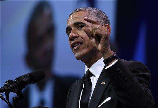 President Barack Obama speaks at the Congressional Hispanic Caucus Instituteâs (CHCI) 38th Anniversary awards gala in Washington, Thursday, Oct. 8, 2015. The gala is the signature event in its Hispanic Heritage Month list of events that include the Public Policy Conference. (AP Photo/Susan Walsh)