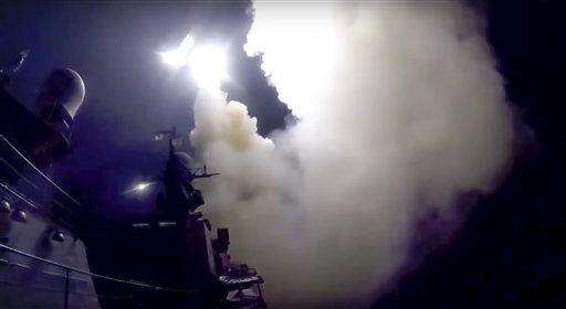 Russian officials say the 26 cruise missiles hit the provinces of Raqqa and Aleppo in the north and Idlib province in the northwest. The Islamic State group has strongholds in Raqqa and Aleppo, while Syria's al-Qaida affiliate, the Nusra Front, has a strong presence in Idlib.