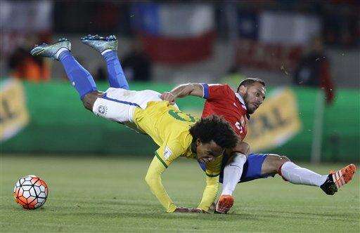 RIO DE JANEIRO (AP) - Brazil showed Thursday it can't win against the best without Barcelona star Neymar, losing 2-0 at Chile as qualifying in South America opened for the 2018 World Cup in Russia.