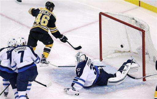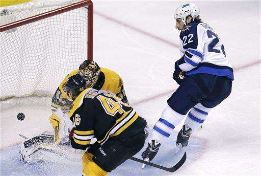Wheeler gave the Jets the lead for good midway through the second period after Andrew Ladd stole the puck from Boston's Matt Irwin behind the Bruins net. Drew Stafford gave the Jets a 3-1 lead.