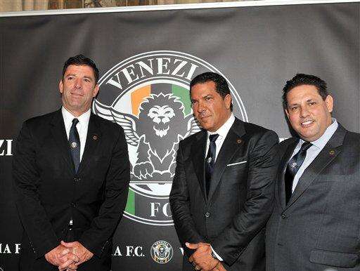 From left, John Goldman, Joe Tacopina and John Tapinis pose for photographers in Venice, Italy, Friday, Oct. 9, 2015. New York lawyer Joe Tacopina leads a group of investors who have purchased Venice's fourth-division soccer club. Tacopina and fellow American investors John Goldman and John Tapinis announced the purchase of Venezia FC in the lagoon city Friday. Tacopina and fellow American investors John Goldman and John Tapinis announced the purchase of Venezia FC in the lagoon city Friday. (AP Photo/Luigi Costantini) The Associated Press