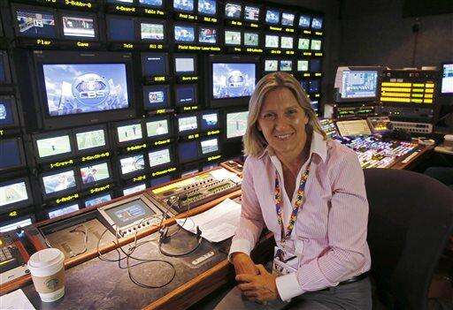 In this Sunday, Oct. 4, 2015, photo, CBS's Suzanne Smith poses for photos as she directs a pre-game show before an NFL football game between the Chicago Bears and the Oakland Raiders in Chicago. As the only woman currently directing NFL games, Smith influences how fans watch the sport from behind the scenes. She’s hoping to be out front in encouraging more women into the profession. (AP Photo/Kiichiro Sato) The Associated Press