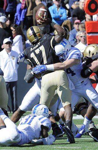 WEST POINT, N.Y. (AP) - Thomas Sirk threw for 197 yards and one touchdown, Jela Duncan scored on a 43-yard run and Parker Boehme scored twice, and the Duke defense stifled mistake-prone Army in a 44-3 victory on Saturday.